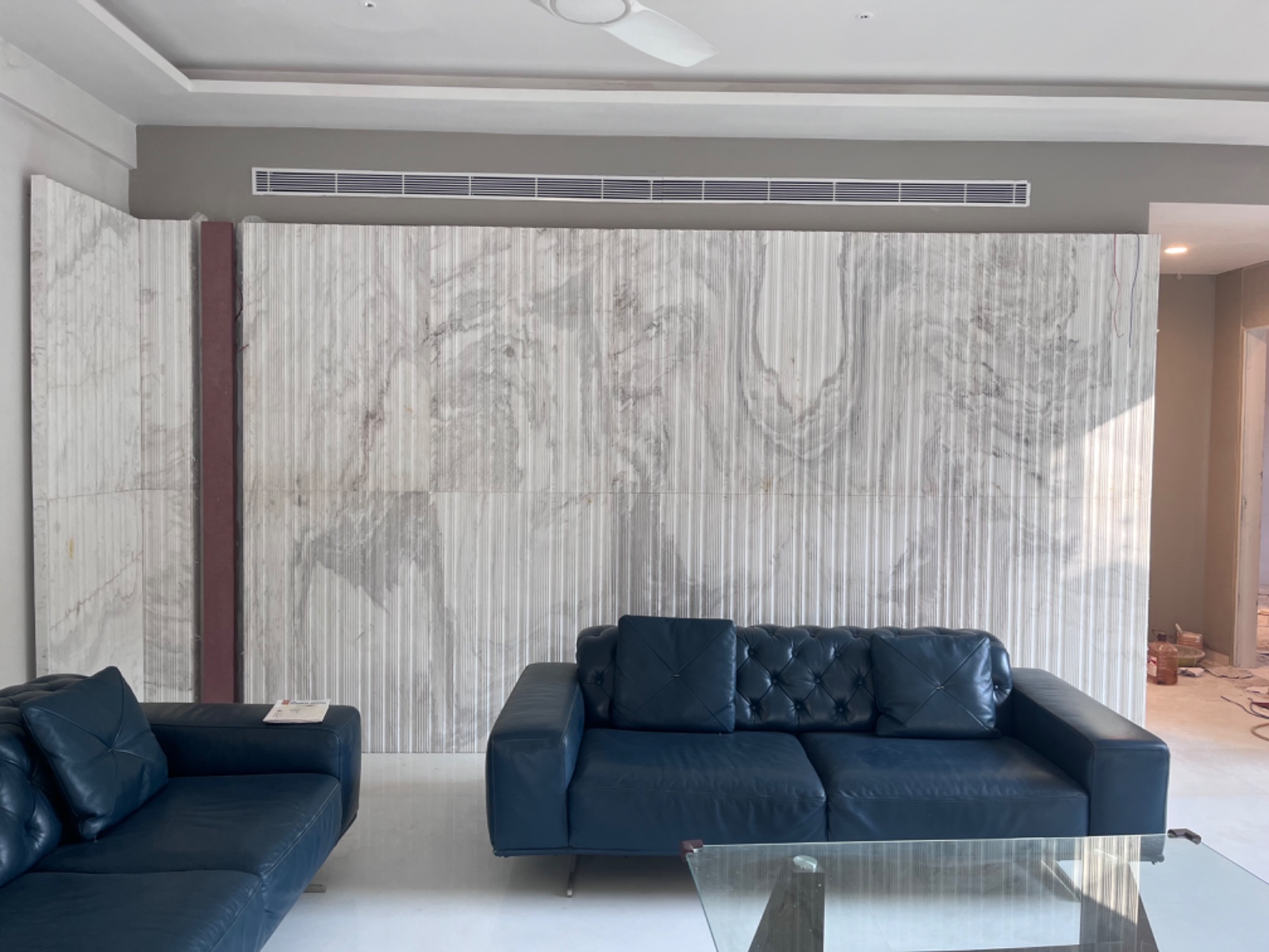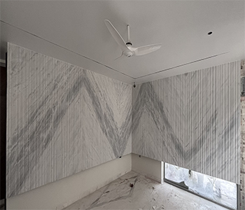 Grooving on stone involves cutting or carving channels, grooves, or slots into a stone surface. This technique is often used for functional purposes, such as creating slots for fitting other materials or components, or for decorative purposes to add patterns or textures to the stone.