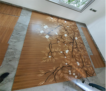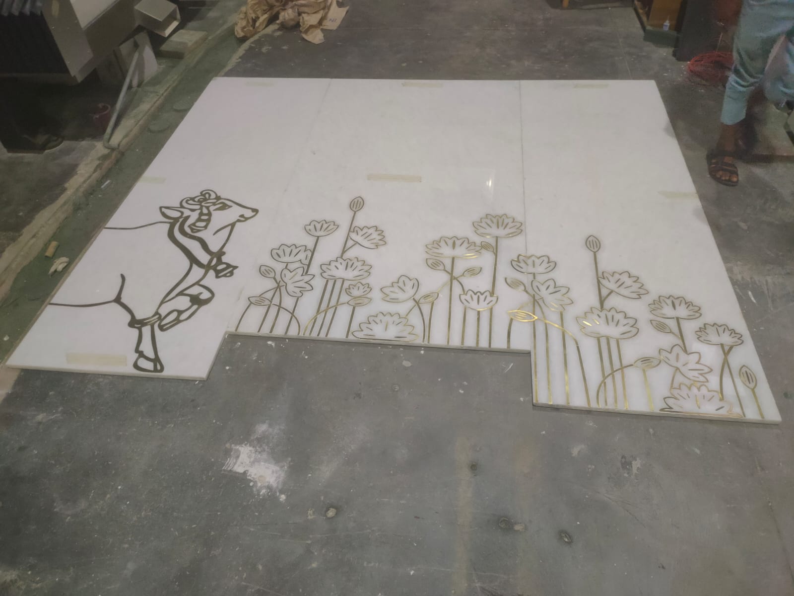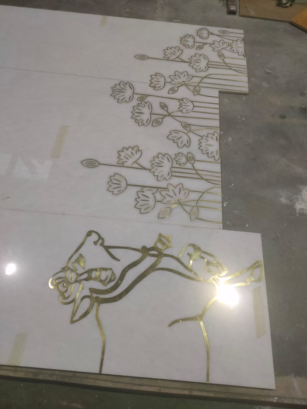 Inlay on stone involves embedding a different material into a stone surface to create decorative patterns, designs, or functional elements. This technique is used to enhance the visual appeal or utility of stone objects and surfaces, such as countertops, floors, or monuments. The inlaid material can be anything from different types of stone to metals, glass, or resin.