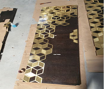Inlay is a decorative technique used to insert a different material into a base material, such as wood, metal, or stone, to create patterns, designs, or artistic effects. The inlaid material is typically set flush with the surface of the base material, creating a seamless and often intricate design.